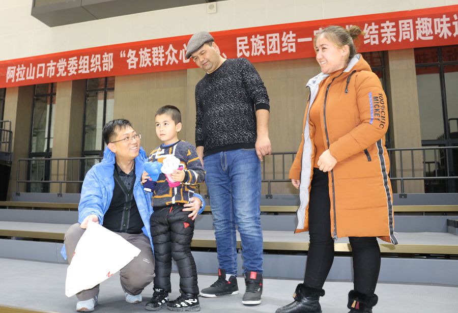 考验干部与亲戚间熟悉程度的“听声辨人”活动把趣味运动会推向高潮,干部们蒙上眼睛,听亲戚们用本民族语言依次说“民族团结一家亲、阿拉山口一家人”,判断到底哪个是自己的亲戚。活动结束后,干部为亲戚送上了精心准备的礼物,结对亲戚于山江·库尔班同志动情的说:“我的汉族老弟蒙上眼睛也能认出我的声音,这让我很感动。他和我一起生活、劳动,加深了对彼此的了解,让我们的心贴得更近了。”