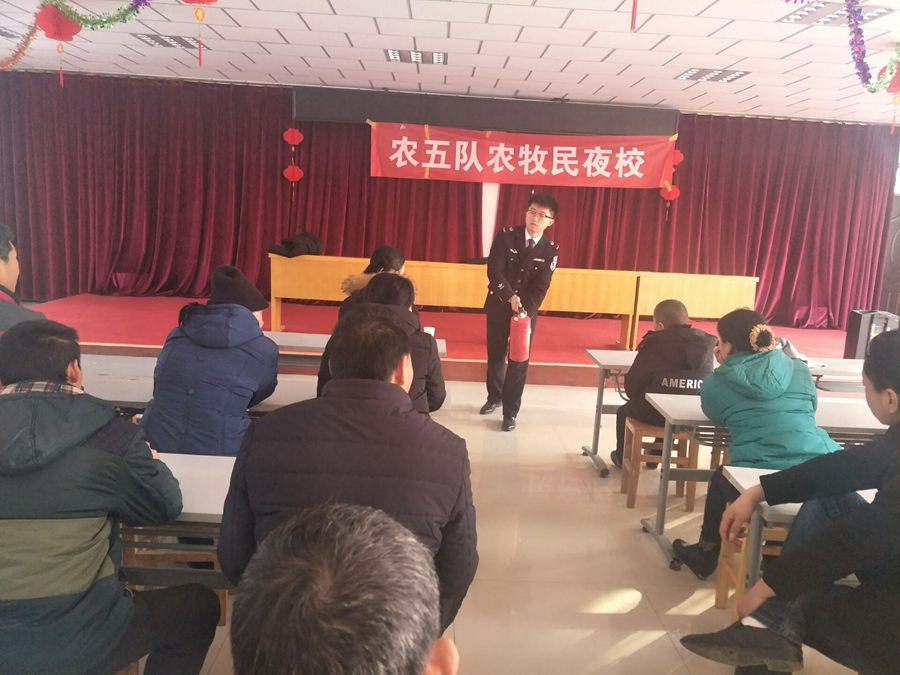 一月十八日上午,为了提高辖区居民的安全用火、用电意识,保证居民能够安全过冬,针对冬季用火安全隐患问题,进一步加强推进预防一氧化碳中毒现象的发生,特邀请精河县消防大队陈警官来农五队给辖区居民进行消防安全知识大讲堂。