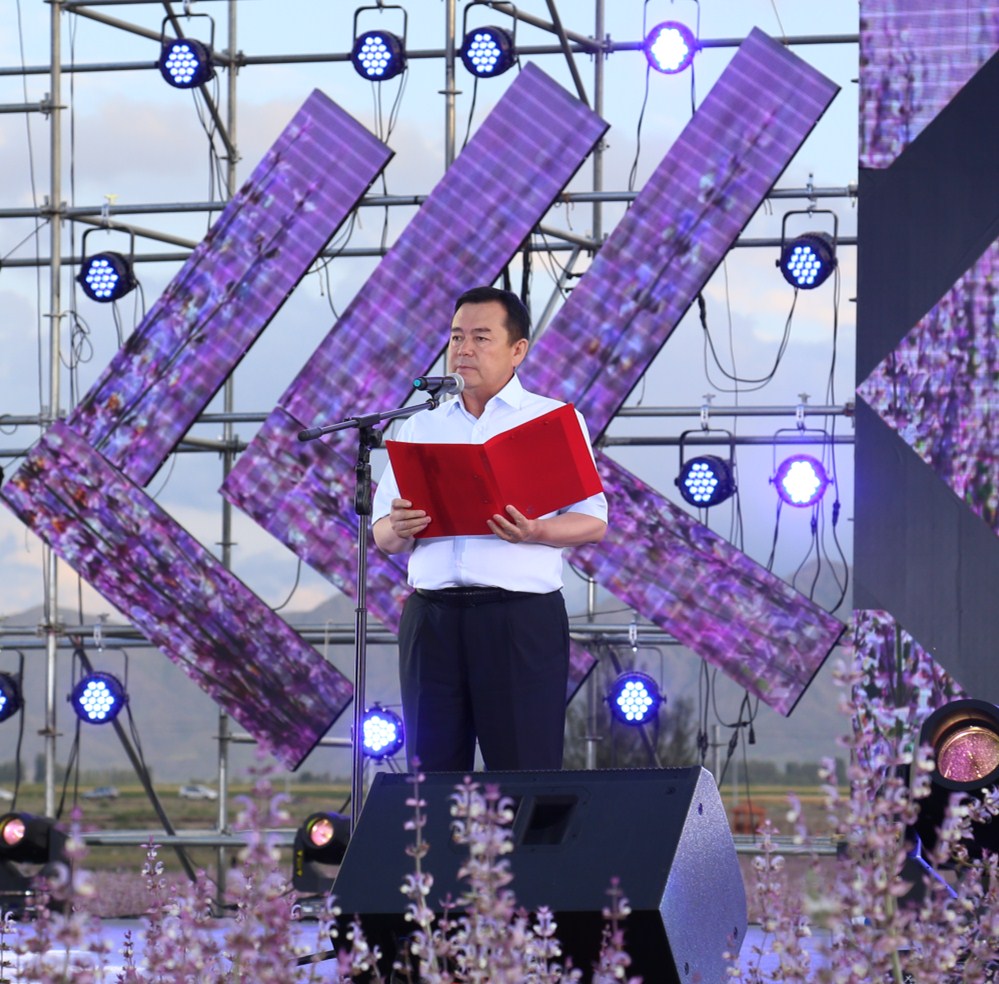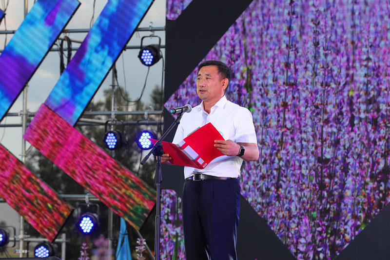 自治州党委常委居玛哈孜·哈德尔别克宣布温泉县首届香紫苏节正式开幕。