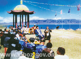 博尔塔拉蒙古族还有一种自己独特的古老的伴奏乐器,称之为"托布秀尔",是一种有两根弦的弹技乐器。本质结构,花纹装饰,多是手工自制,形状和演奏方法与哈萨克族乐器冬不拉相似。