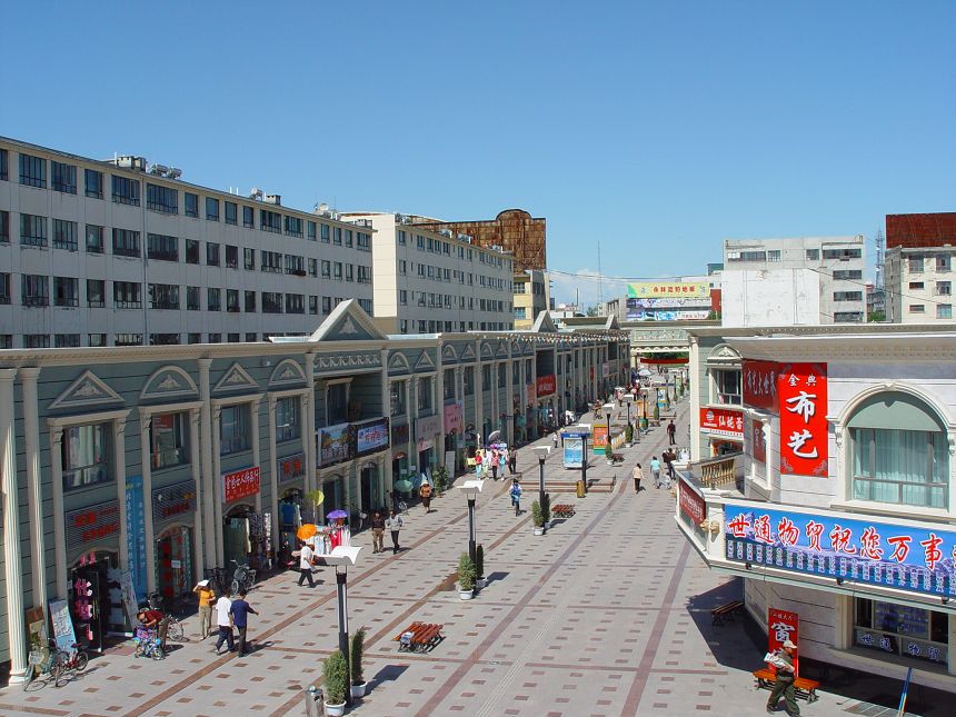 博乐市“商业步行街”是根据城市整体布局、规划,精心设计的一条多功能商业步行街。它位于博乐市团结路与北京路之间,紧靠青德里大街,地处博乐市商业繁华地段。“商业步行街”东门在团结路,西门在北京路,与街心公园隔街相望,北门面朝青德里大街。规划建设用地面积22983平方米,规划建筑面积18661.14平方米,地上2层,地下1层。整个步行街长400米,街宽12米,街内环境优美,设施齐全,商铺门面300多套,分为饮食服务区、文化娱乐区、服装鞋帽区、家电通讯区、民族商品区、百货批发区、副食调味区、停车场等多个功能区。步行街路面为大理石铺砌,配置旱式喷泉和条型地灯,房屋采用欧式构件高标准设计。步行街的建成,对周边商业发展产生了强大辐射作用,成了博乐市的一个商业中心,也是博乐市一道亮丽的风景线.