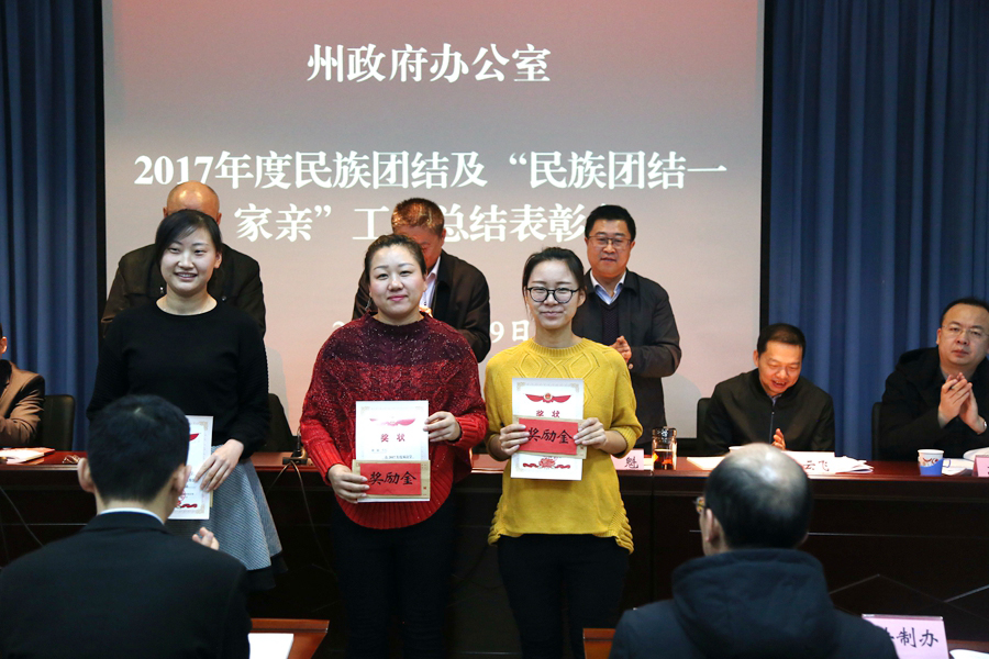 会议表彰了在 2017 度民族团结工作中取得显著成绩先进个人;全面总结了2017 年度“民族团结一家亲”工作任务,安排部署了2018 年主要工作任务。 并对2018年“民族团结一家亲”工作中涌现出的 3个先进个人和3个双语学习优秀学员进行了表彰。